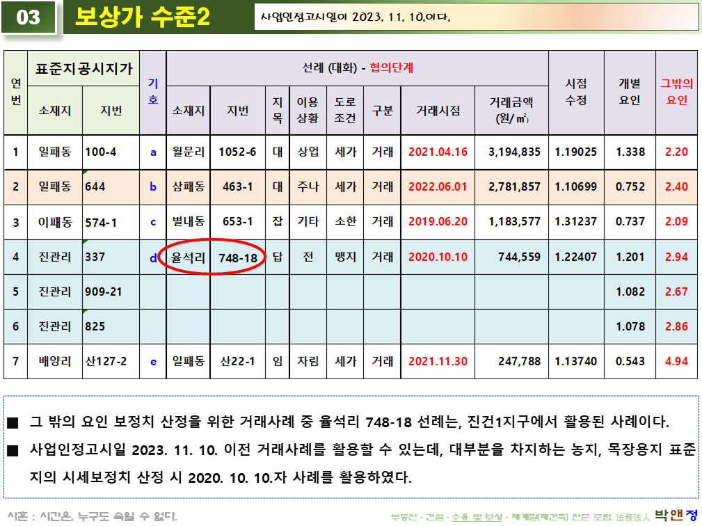 [1] 위 사업 관련 2025. 12. 05. 비상대책위원회 주민모임에서 한 법무법인 박앤정의 설명자료(금번 통보된 협의금액 분석자료)입니다.