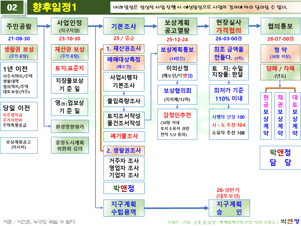[1] 위 사업 관련 2025. 12. 05. 비상대책위원회 주민모임(감정평가사 선정을 위한 보상설명회)에서 한 법무법인 박앤정의 설명자료입니다.