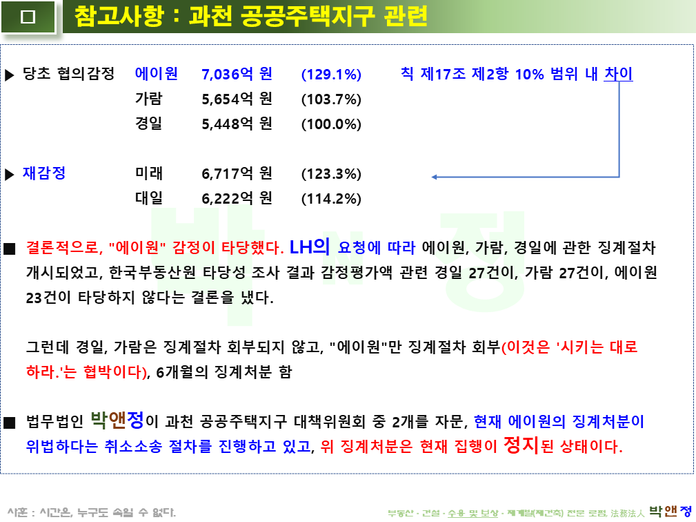 [1] 위 사업 관련 2025. 12. 26. 연합대책위원회 주민모임(감정평가사 선정을 위한 보상설명회)에서 한 법무법인 박앤정의 설명자료입니다.
